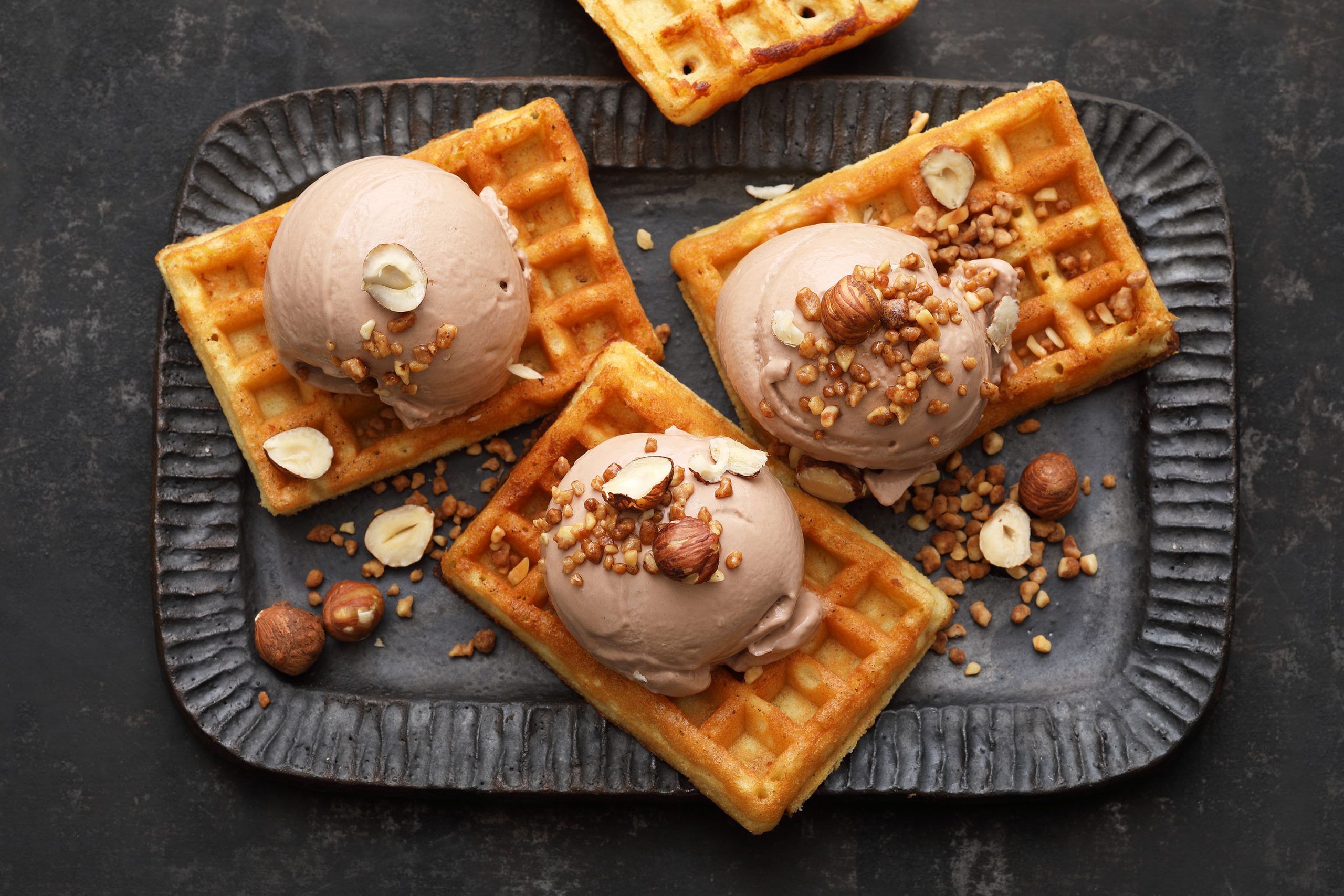 Veganes Eis erfreut sich bei vielen Verbrauchern immer größerer Beliebtheit und ist daher in diesem Jahr ein absoluter Megatrend. Als Basis bei der Herstellung dienen pflanzliche Milchersatzprodukte wie Soja, Kokos, Erbsenproteine oder Mandeln. Unsere vegane Haselnuss-Eiswaffel sieht nicht nur fantastisch aus, sondern schmeckt auch noch unfassbar lecker nussig.